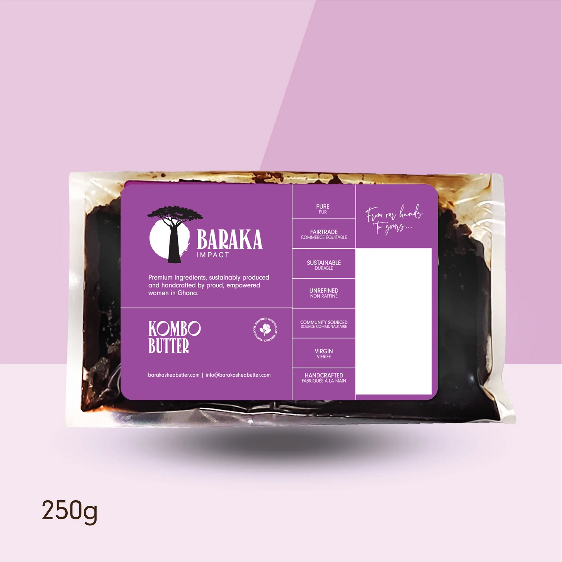 Baraka Kombo Butter is pure, natural, wild-crafted and, in addition to providing the dignity of income to hard-working rural women, the tall trees provide natural shade and ecosystem biodiversity for Cocoa crops.